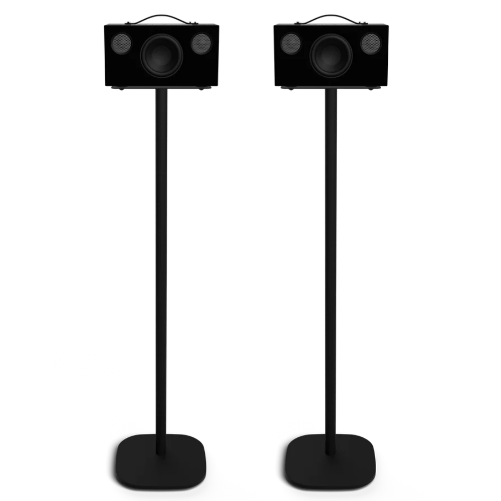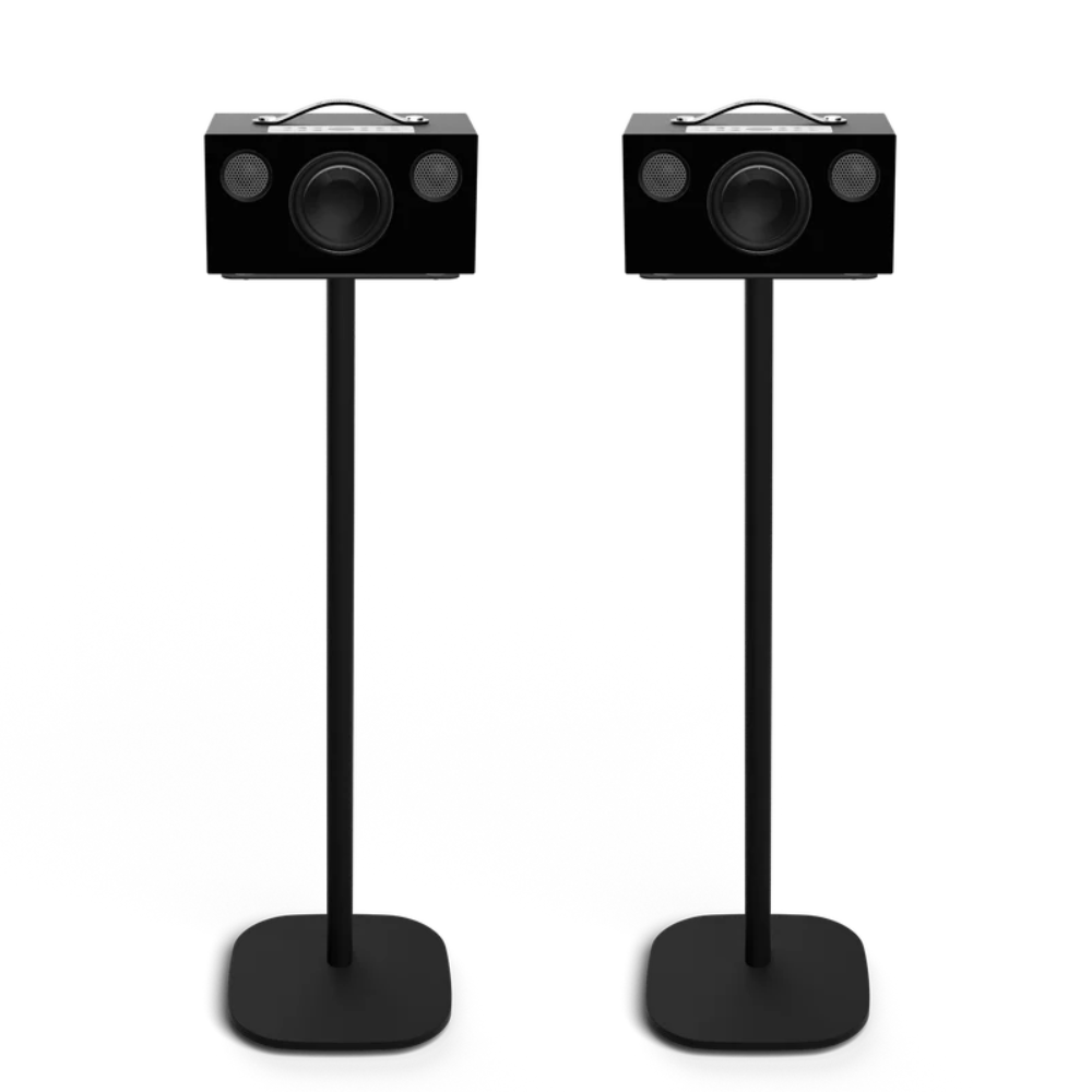 Pair of floor stands for A10/G10. Height 100 cm. The Vebos floor stands are designed for Audio Pro A10 and G10, and made of high quality steel, and black powder coating to match your speakers. The hollow tube provide a tidy cable routing. Speakers sold separately. Stands shipped separately, from Vebos.